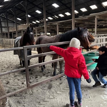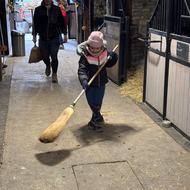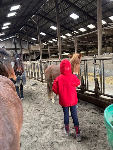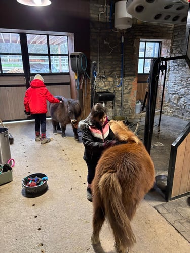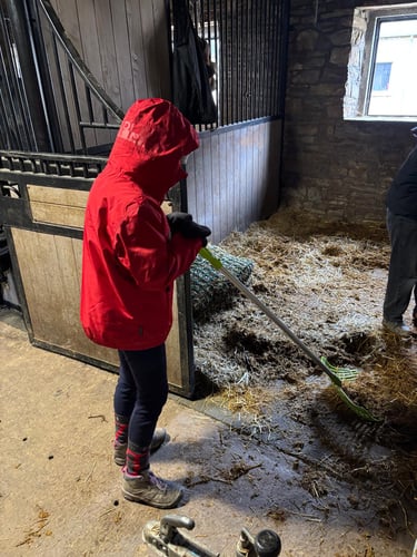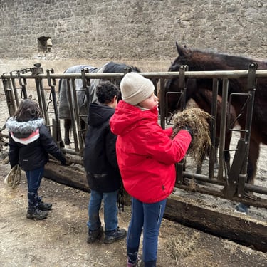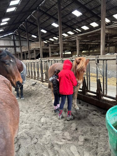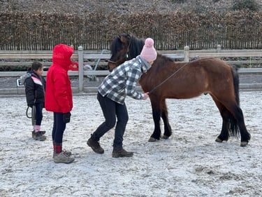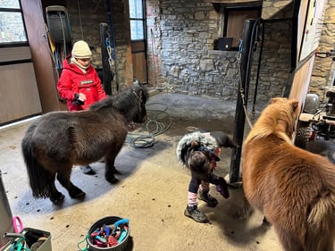 Deuxième journée de stage avec du travail en piste et en écurie, des moments créatifs, une visite à la ferme d'en haut pour saluer les plus jeunes en terminant par une remise en beauté de Pauline et Garry. Une journée qui est à nouveau passée trop vite ; vivement le prochain stage en avril....